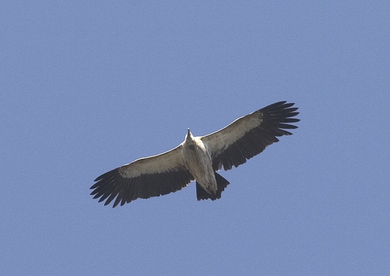 (1.) Adult Himalayan Griffon Vulture. Pangot, Uttarakhand, India, 24 November 2007. The adult Himalayan is seldom a problem. Uniformly pale underwing-coverts (also upperwing), pale but somewhat streaked underbody, broad wings with black remiges.