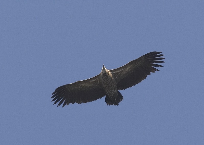 (6.) Juvenile Himalayan Griffon. The same bird as in the previous photo. Darkish upperparts. The streaks of the upperwing-coverts are not clearly visible in this photo (nor always in the field).