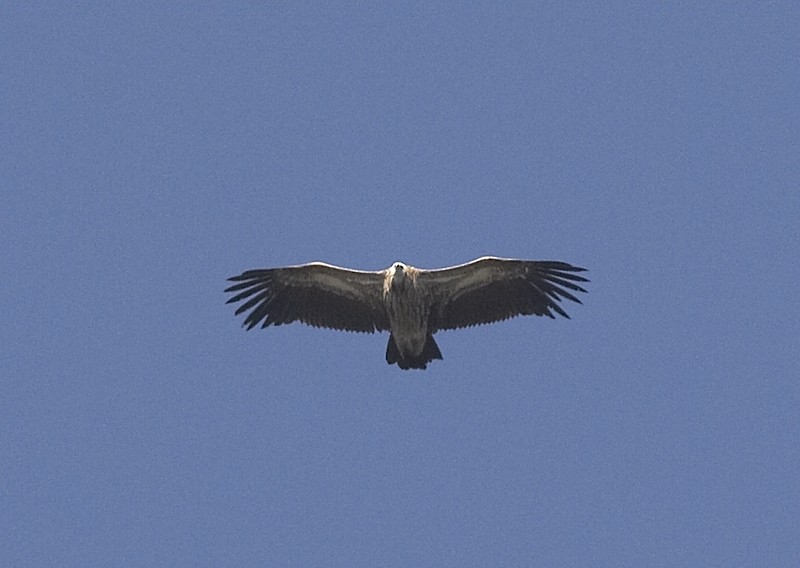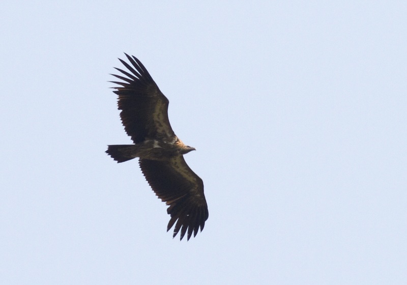 (3.) Subadult Himalayan Griffon Vulture. Barthogai, Almaty province, Kazakstan, 24 May 2008. This bird seems to be in its third calendar-year: secondaries are still juvenile, but about two inner primaries have been moulted (but probably no ongoing moult - on the other hand, some April photos from India show the second primary growing in a presumed second-calendar-year bird). The appearance of the underwing-coverts have changed a lot, but the underbody is still juvenile-like, but probably moulted once. Very broad wings and proportionately small head make it look like a Himalayan Griffon structurally, but structural differences are not always easy to see in lone birds.