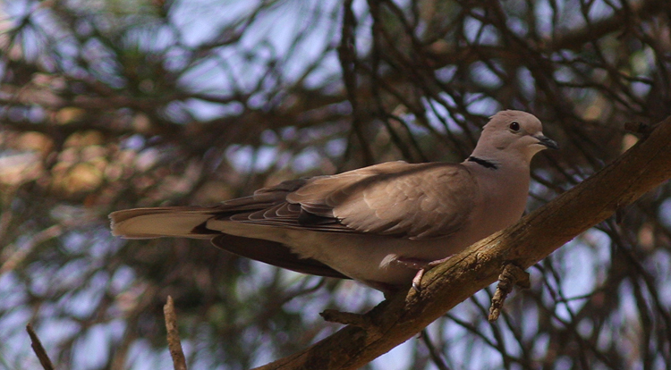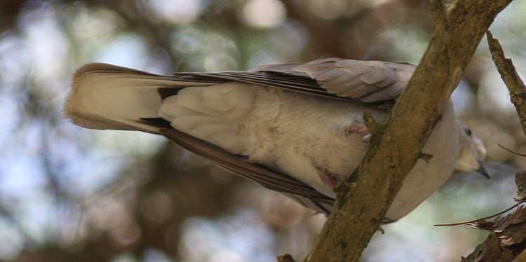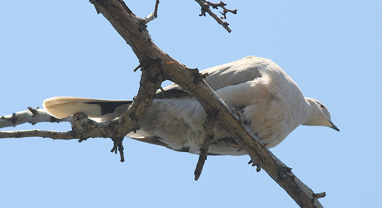 Paler and more slender structure than Collared Dove S. decaocto. Especially lower belly and undertail whitish, see below.