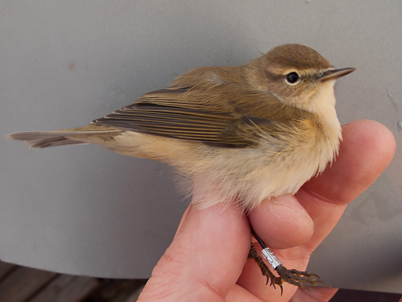 We also trapped many birds at our normal ringing sites. Between 11 September and 9 October I personally ringed,measured and photographed 45 Chiffchaffs at the Laajalahti ringing site, and of these, 18 called in the hand or immediately after release, all using the sweeoo call. One of these 18 was identified as an adult based on fresh rectrices with rounded tips. William Velmala also ringed one adult with a sweeoo call.