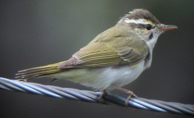 (3.) Karakoruminuunilintu Phylloscopus occipitalis 1.12.2003 Baga, Goa, Intia