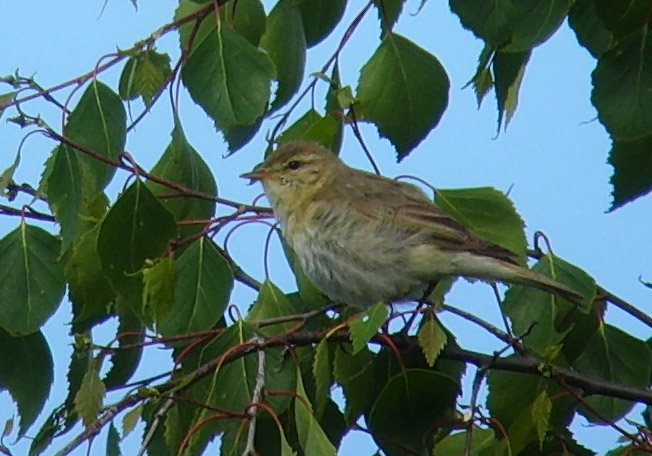 Poikkeava Phylloscopus, todennäköisesti pajulintu P. trochilus / An aberrant Phylloscopus warbler, probably Willow Warbler