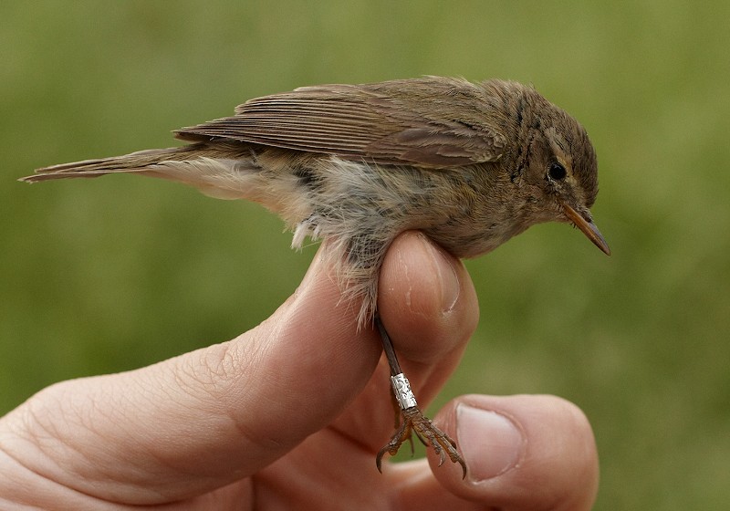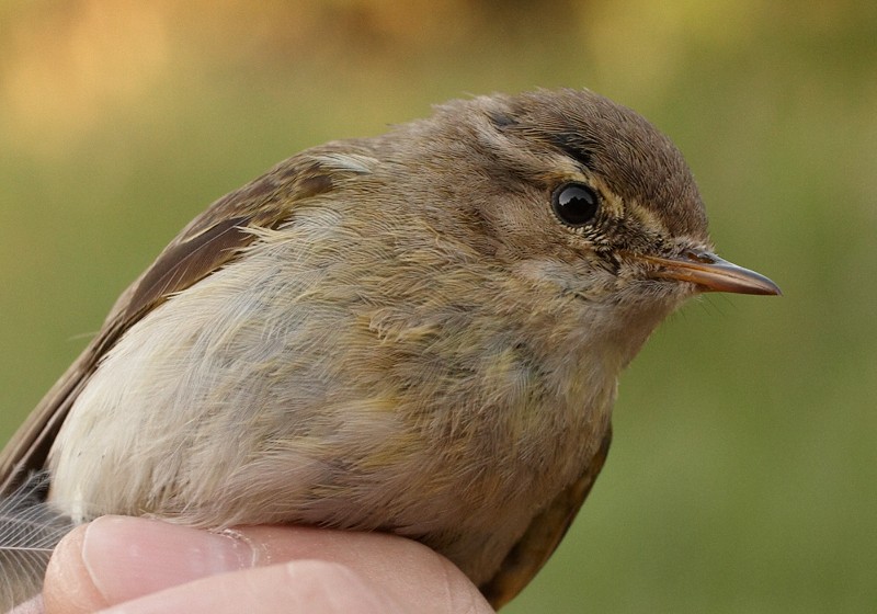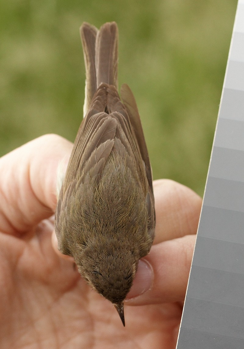 The following photos are of the female. The wing length was 56,5, wing formula 6,5/0/0/1/3/6/8 and bill 11,8. This bird was also a quite normal Common Chiffchaff, although quite small for an abietinus female.
