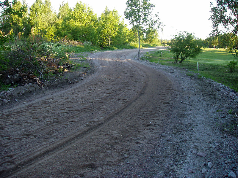 Syksyllä 2004 valmistunut ravirata teki ruman jäljen maisemaan. (Kuvattu 9.6.2005)