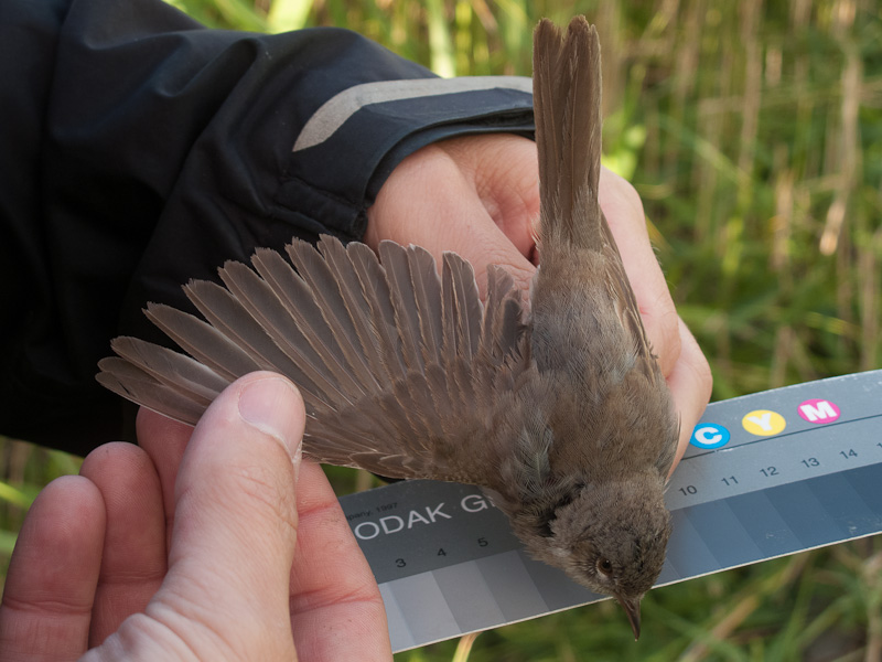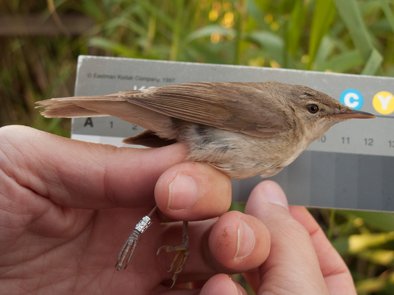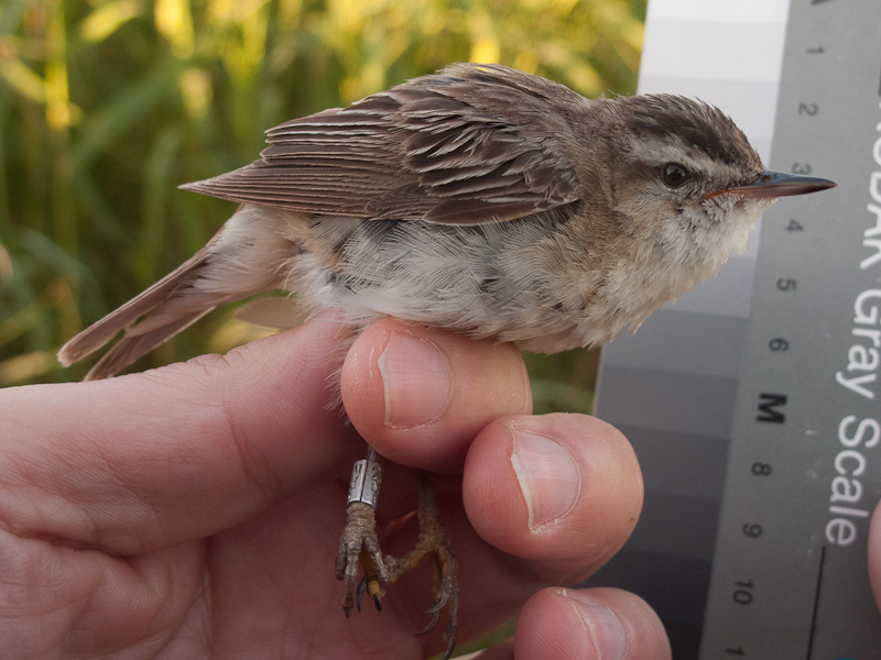 It turned out that we have earlier photos of one of the retrapped Sedge Warblers. First, photo from today, and then from 25 July 2010.