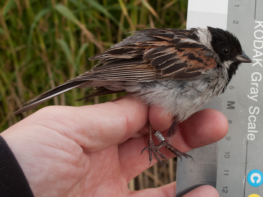 This nice male Eurasian Reed Bunting was a retrap. It has not yet started the wing moult, and is most probably a local breeder.