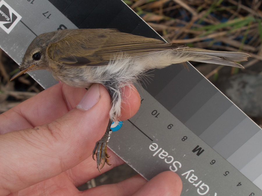 Our first Chiffchaff of the season was a juvenile bird with typical fluffy body plumage and less well defined supercilium. The species is not numerous in the surrounding areas and this may well be offspring of the local pair from about hundred meters away.