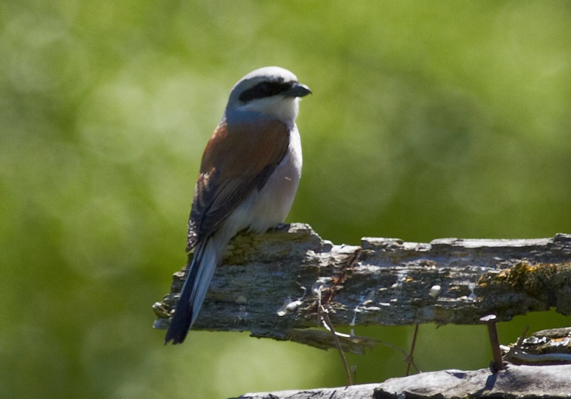 (11.) A problematic bird. In this photo it resembles Brown Shrike quite a lot. The back is brownish and there are some bars on the flanks, both good for cristatus. However, in some other views the back was not so brownish and the outermost rectrices seemed not to be distinctly shorter than the rest, as in Brown Shrike. We never saw whether this bird had a primary patch or not, despite trying. Photographed at Artibash, on the shore of lake Teletskoye, 440m asl.16 June 2010.
