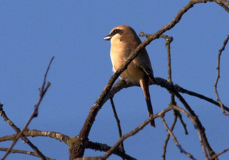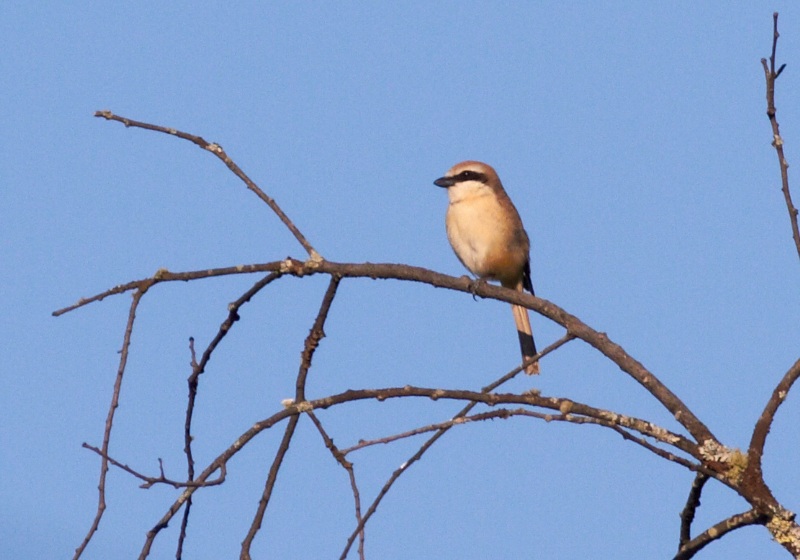 (8.) The same place again, but a different bird. This seems clearly to be a hybrid between Isabelline and Red-backed Shrike.
