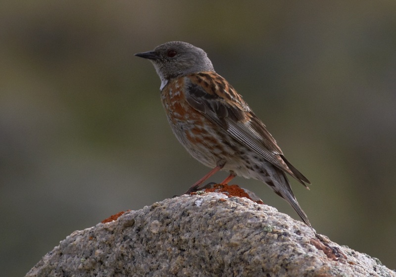 (3.) Alppirautiainen 27.8.2003 Balea Lac, Fagaras, Transilvania, Romania, 2500 m. Tuoreessa puvussa. Alapuolen punainen selvästi suppeampi kuin himalajanrautiaisella kuvassa 1. Ei ruskeaa poskilla ja silmäkulmajuovakin on erittäin heikko aavistus. Nokassa keltaista.