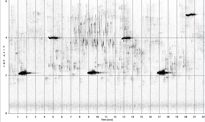 Singing bird using three frequencies. 11 June 2007, Chusovaya river, Chelyabinsk oblast, Russia.