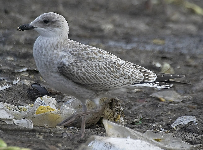 (2.) 14.8.2005 Tampere. Tällä yksilöllä on selvärajainen valkea vatsa. Tällaisia yksilöitä esiintyy harmaalokkien joukossa säännöllisesti harvakseltaan. Johtunee ainakin osittain kulumisesta ja haalistumisesta.