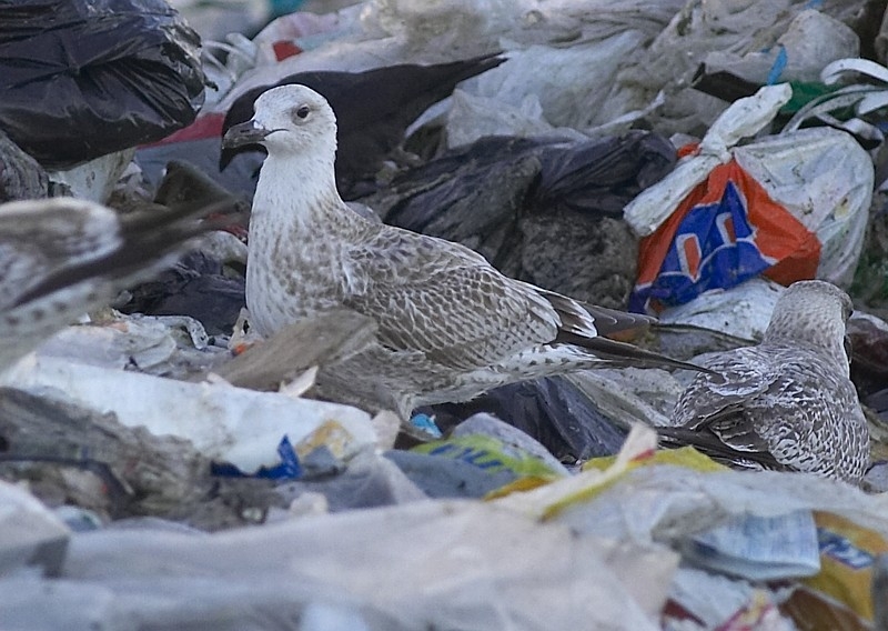 Espoo, Ämmässuo 15.9.2007. Tämä saattaa olla harmaalokin ja aroharmaalokin risteymä / This may be a hybrid between Herring and Caspian Gulls