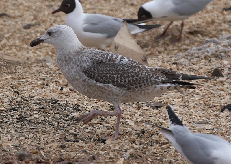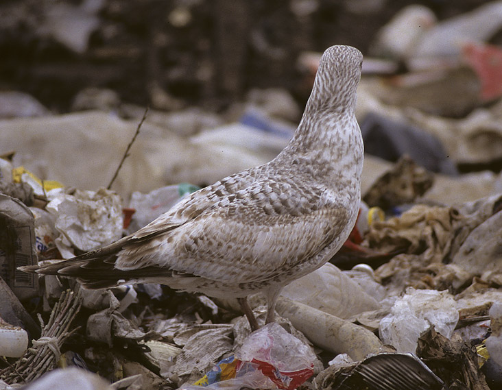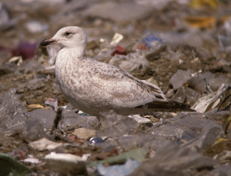 (5.) 20.4.2000 Tallinna. Siipi keskimääräistä kuluneempi ja haalistuneempi. Hartiahöyhenkuvio tyypillinen harmaalokille.