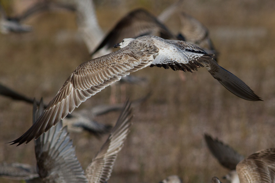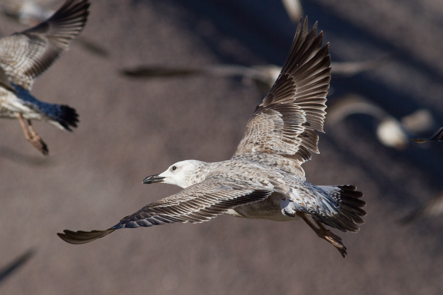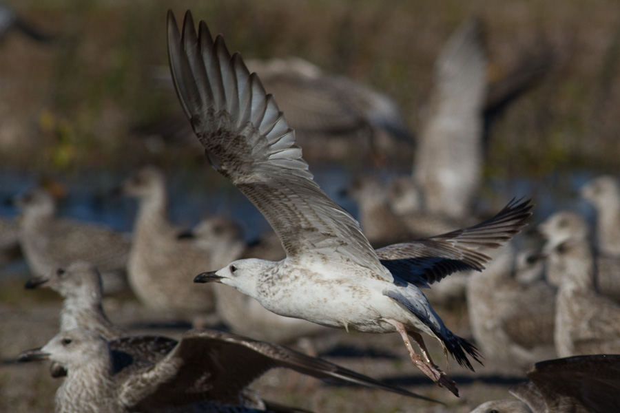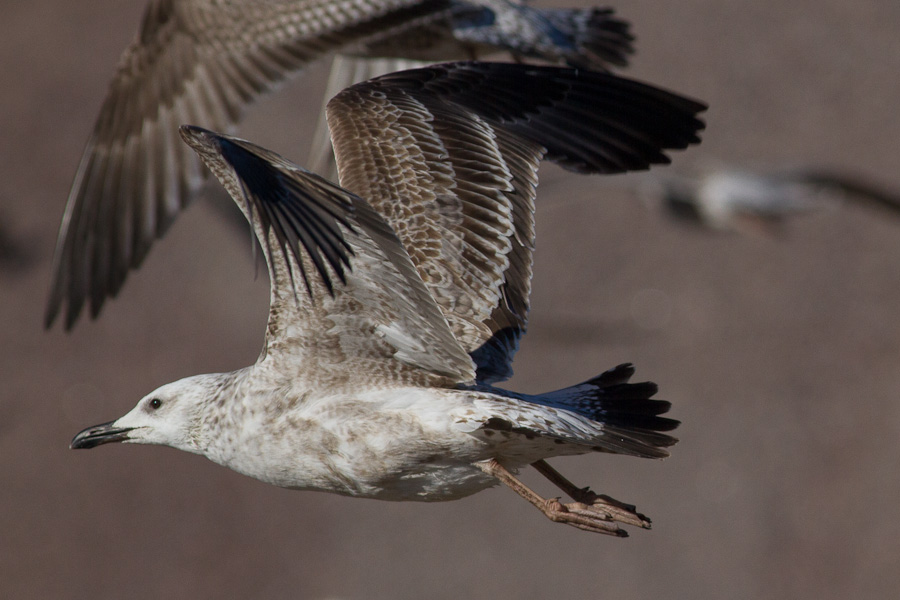 Äänite. Alussa lyhyttä ääntä, lopussa pitkä ääni ja heti sen perään harmaalokin pitkä ääni.
