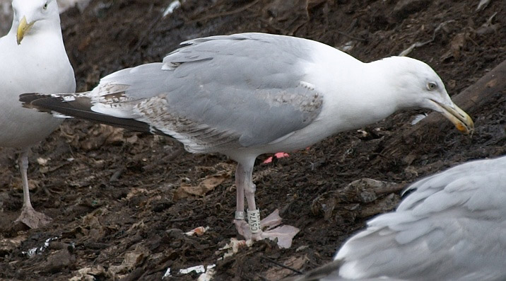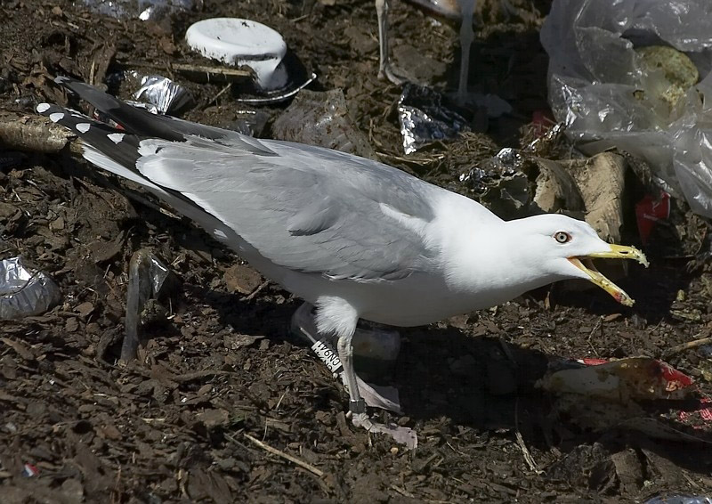 (8.) Tässä harmaalokki kolme vuotta syntymänsä jälkeen. 4.7.2004 Tampere. (rengas C010N, syntynyt vuonna 2001)