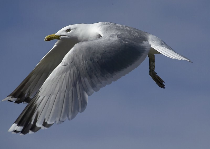(2.) Aikuinen harmaalokki lennossa. 21.5.2005 Tampere (rengas C65J7).