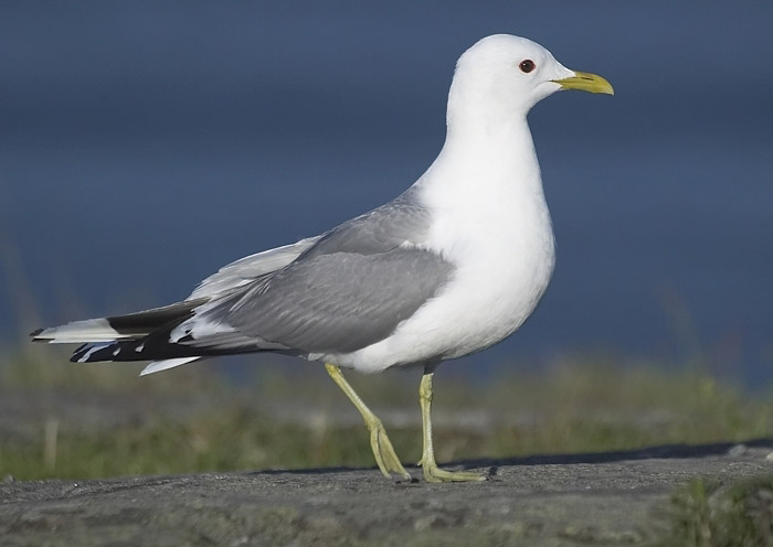 (1.) Aikuinen kalalokki muistuttaa väreiltään harmaalokkia. Kalalokki on kooltaan kuitenkin pienempi, silmä on kokotumma ja nokassa ei ole punaista laikkua. Syyspuolella pää on molemmilla lajeilla vaihtelevan viiruinen. 5.6.2004 Kirkkonummi.