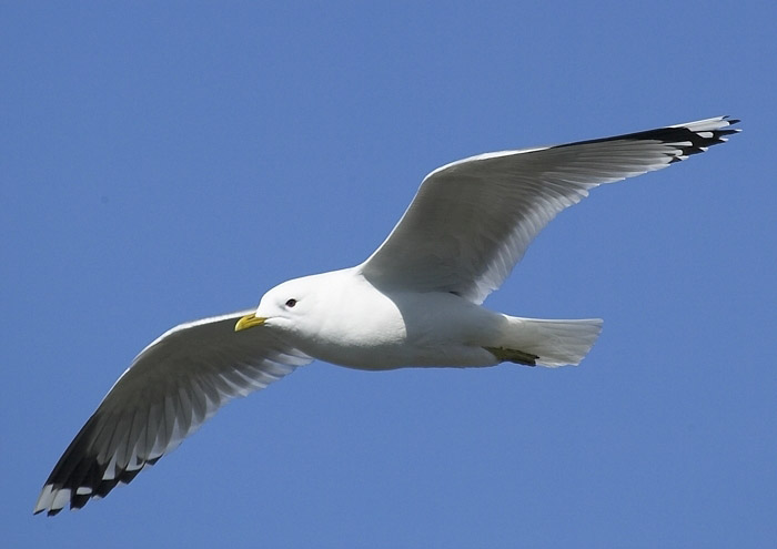 (2.) Aikuinen kalalokki lennossa. Siivenkärjissä on mustaa ja valkoista kuten monilla muillakin lokkilajeilla. 5.6.2004 Kirkkonummi.