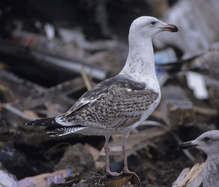 (3.) Esiaikuinen merilokki on tummanharmaan, ruskean ja vaalean kirjava. 20.4.1998 Tallinna.