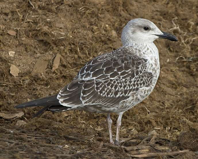 (3.) Nuori selkälokki muistuttaa varsin paljon nuorta harmaalokkia, mutta on pienempi, sirompi ja pitkäsiipisempi. Värierot ovat voimakkaammat: selän höyhenten keskustat ovat tummemmat ja alapuoli on yleensä varsin valkea. 6.9.2003 Tampere (rengas HT227038).