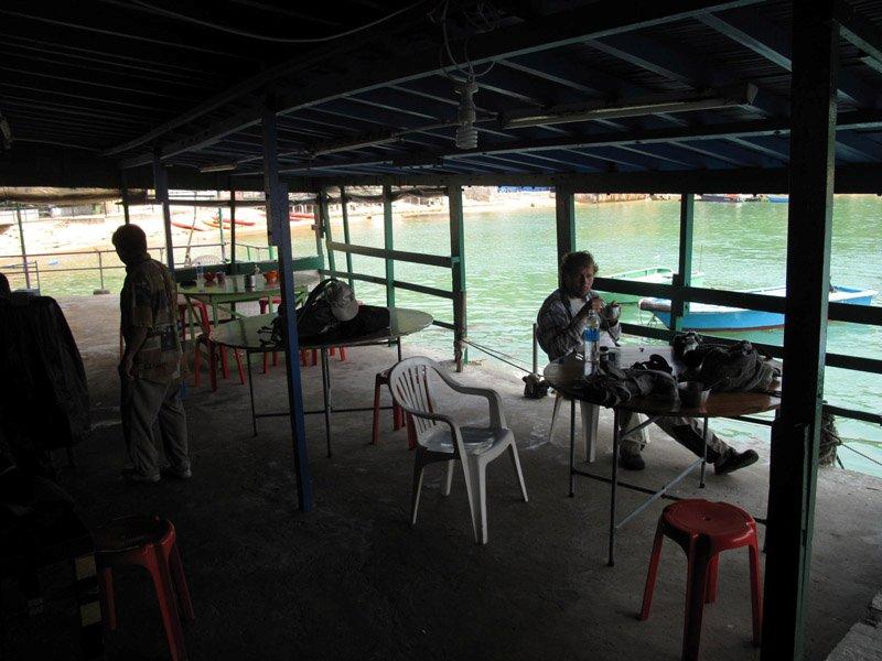Duschen var bara en slang med kallt vatten, men ack, så otroligt skön efter en svettig o myggig dag. Vi hade egen restaurant också, eftersom ägaren har restaurant, men inte var på plats. Enkelt att göra mat o skönt att sitta på terrassen o titta ut över havet o ta en öl. När det inte fanns mygg dvs. Då blev det snabbmat.