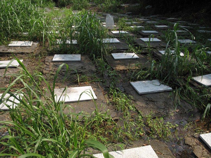 Så har alla ’indigenous’ rätt att bli begravda på någon kulle i HK. Men det tar plats. En företagare hittade på att bygga små plattor över halva Po Toi som skulle ta en större mängd. Det var bara det att det var illegalt, så det stoppades. Nu finns det små plattor överallt som ingen antagligen orkar föra bort för de väger rätt så mycket. Cementen under vittrar redan bort efter några veckor, men plattorna håller. Företagaren försökte också sälja konceptet till andra, men valde en dag då en stor del låg under vatten efter kraftiga regn.....