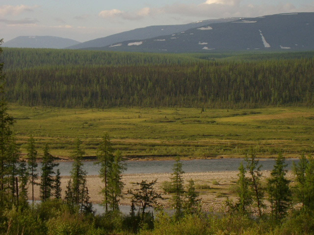 Koshim - joen hiekkasärkällä Jugid Va - kansallispuiston pohjoisosissa.